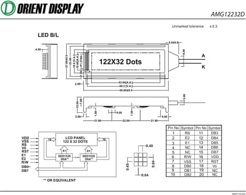 AMG12232DR-B-G6WFDW (2.2″ 122×32 Graphic LCD Module)